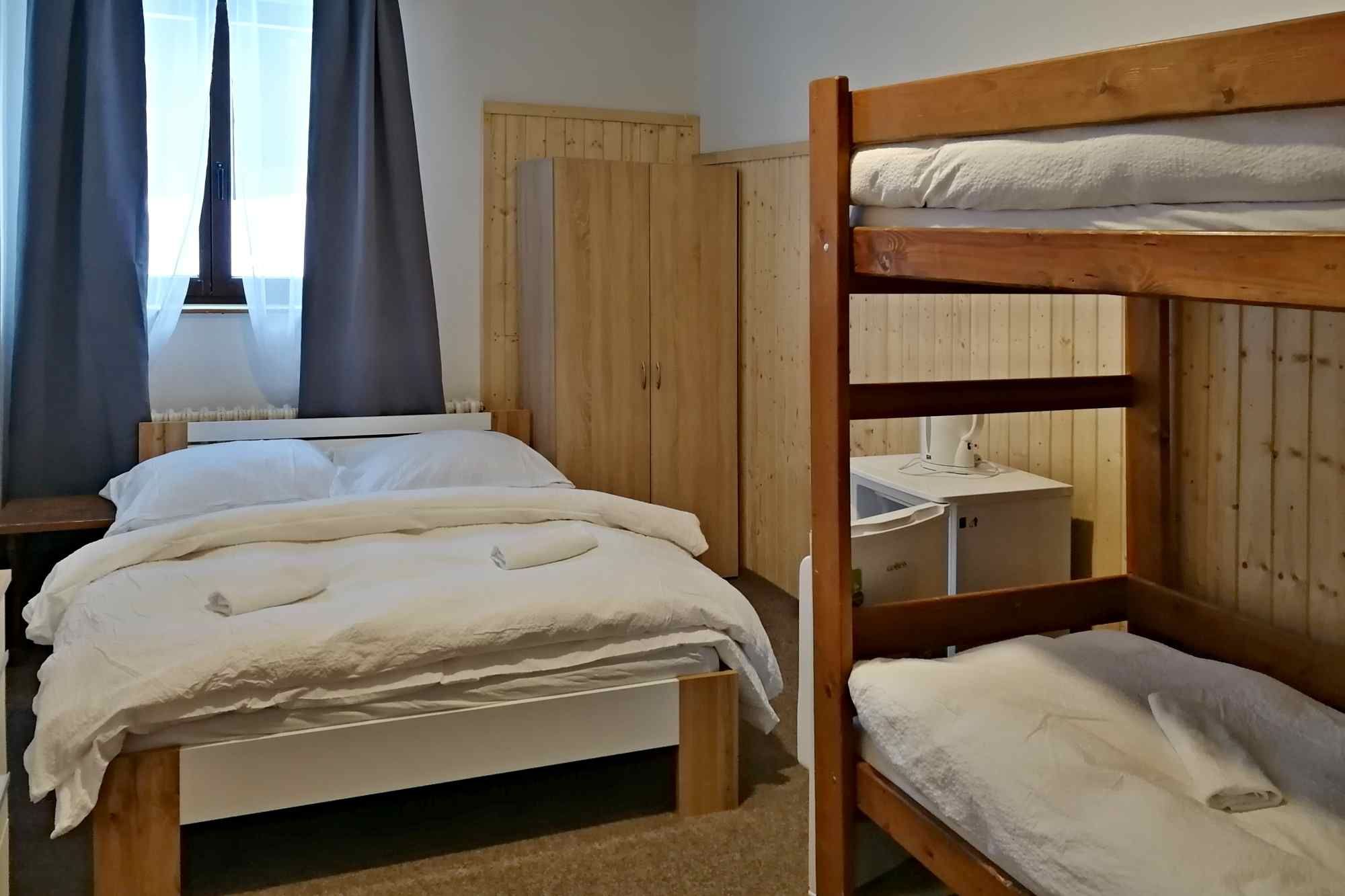 Cottage KČT in Prášily, in the Šumava National Park, with its capacity of 84 beds, large common room, shared kitchen for self-cooking or half board directly in the cottage, terrace and garden. The distribution of rooms into three, four, five and six-bed rooms is also suitable for smaller groups of guests and families with children. We also offer a barrier-free room with its own bathroom. The cottage has a large garden with fireplace and playground, free parking at the cottage, ski / bike. Of course there is the provision of bed linen incl. Towels and free Wi-Fi throughout the cottage.